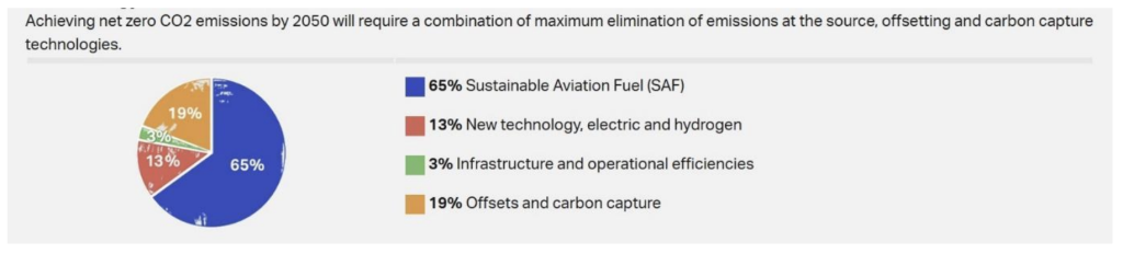 1.15. IATA estimates that SAF can contribute to 65% of the reduction in aviation emissions needed to achieve the net zero CO2 emission target by 2050 (IATA, Net Zero Roadmap, 2023).